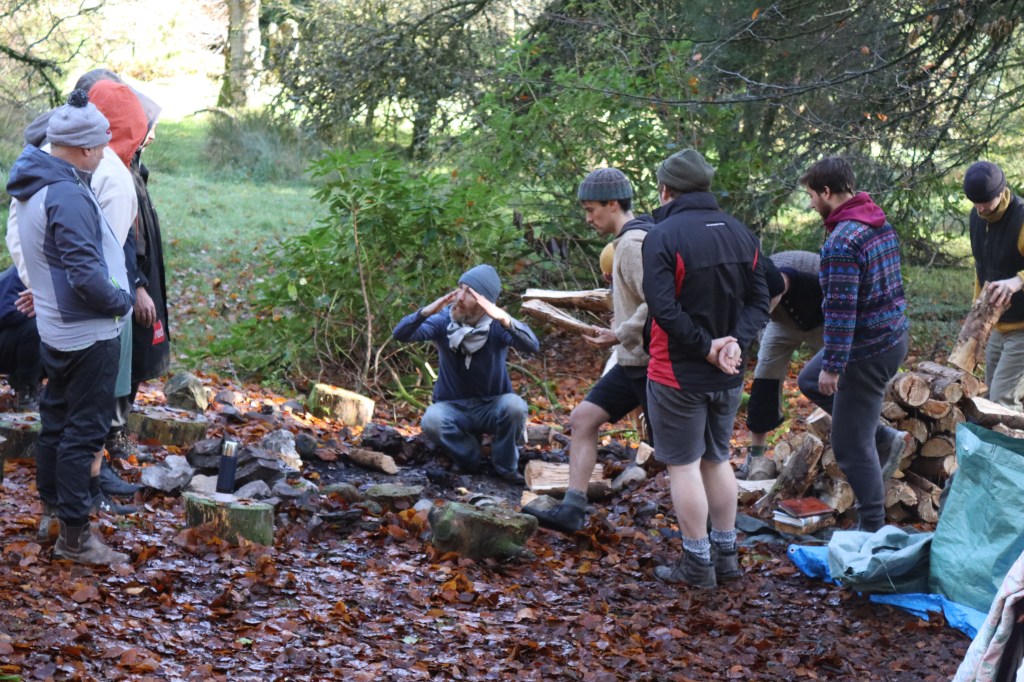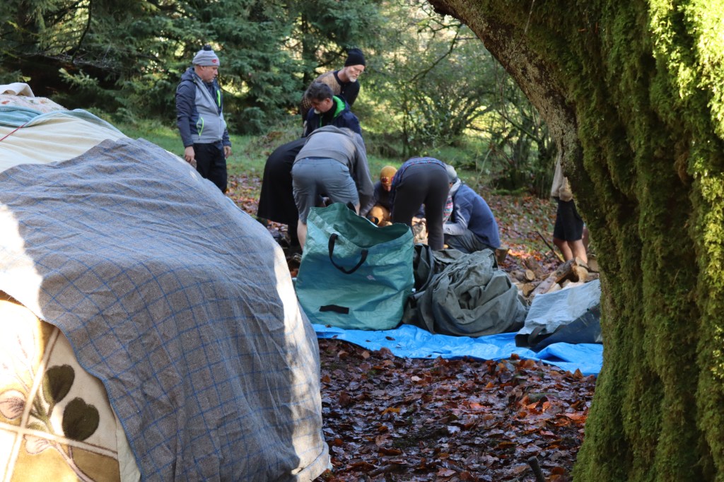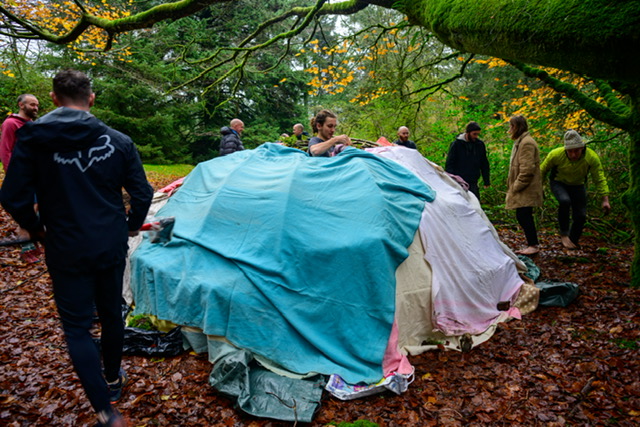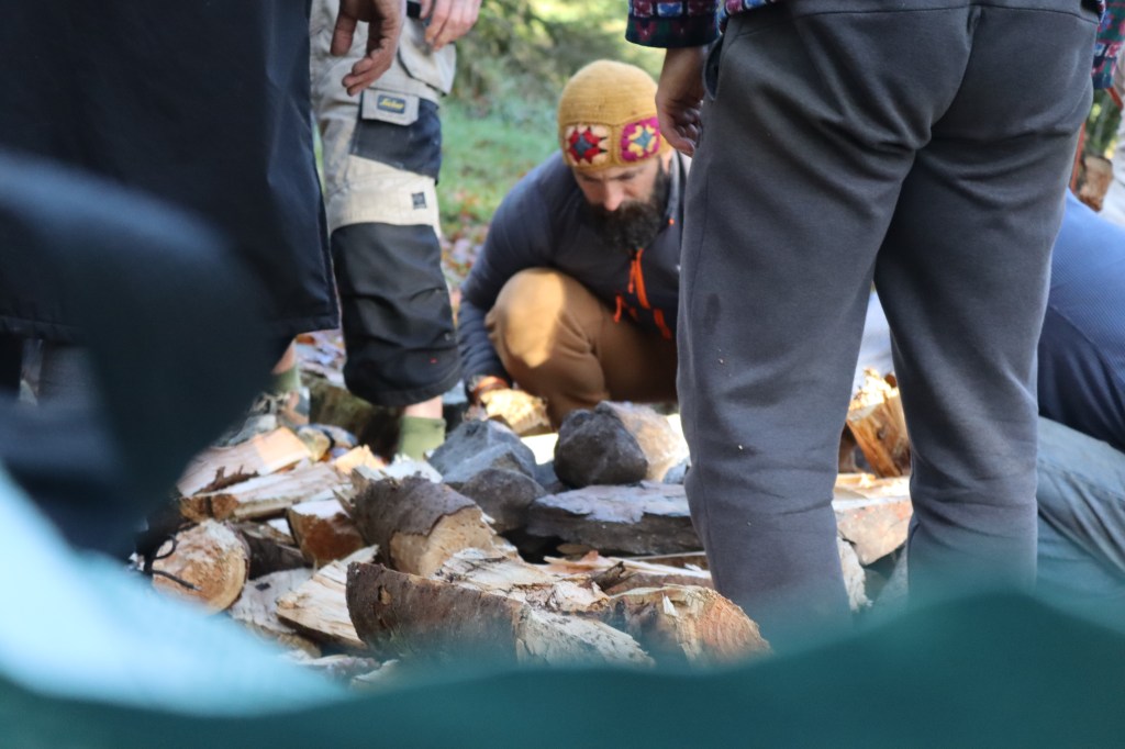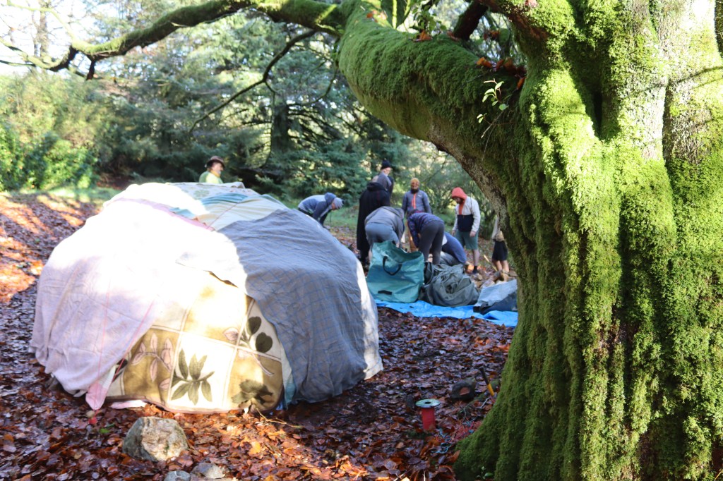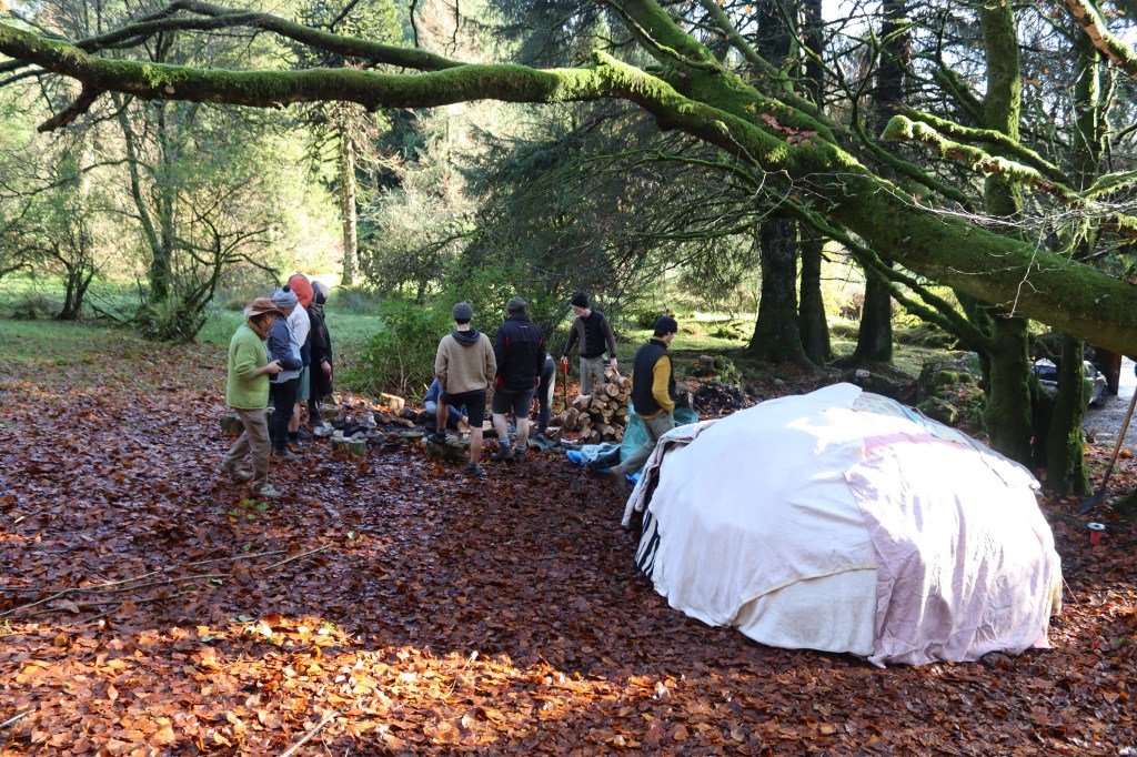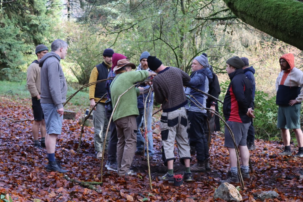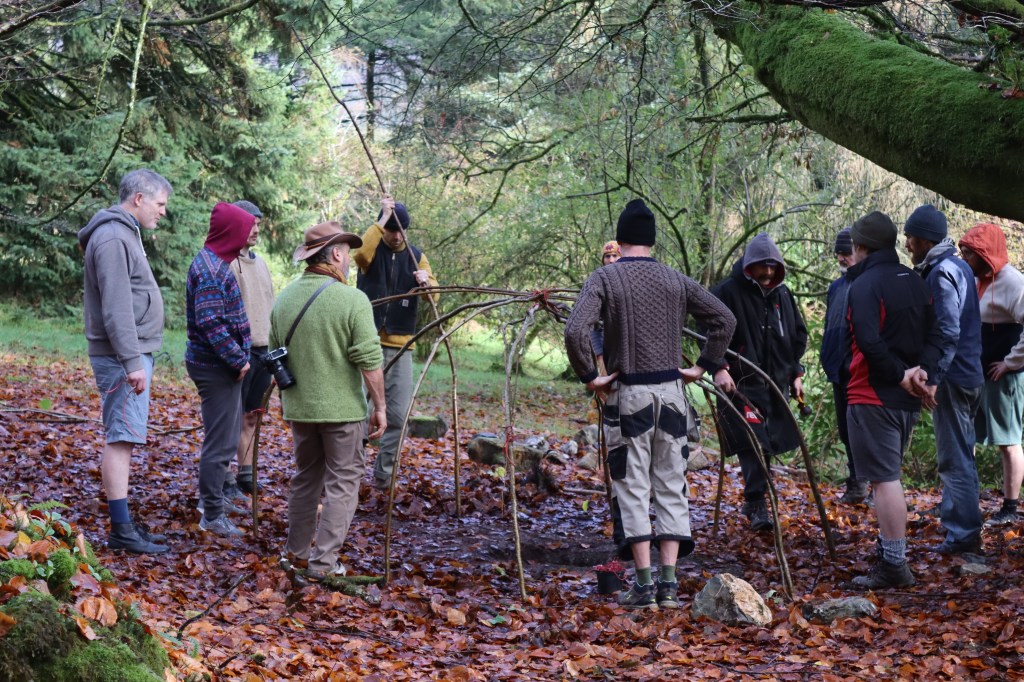 building the frame for the sweat lodge