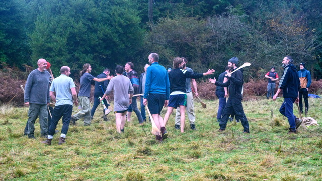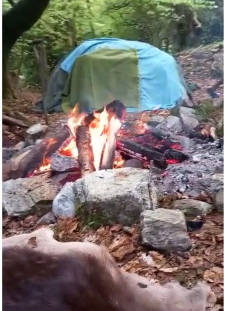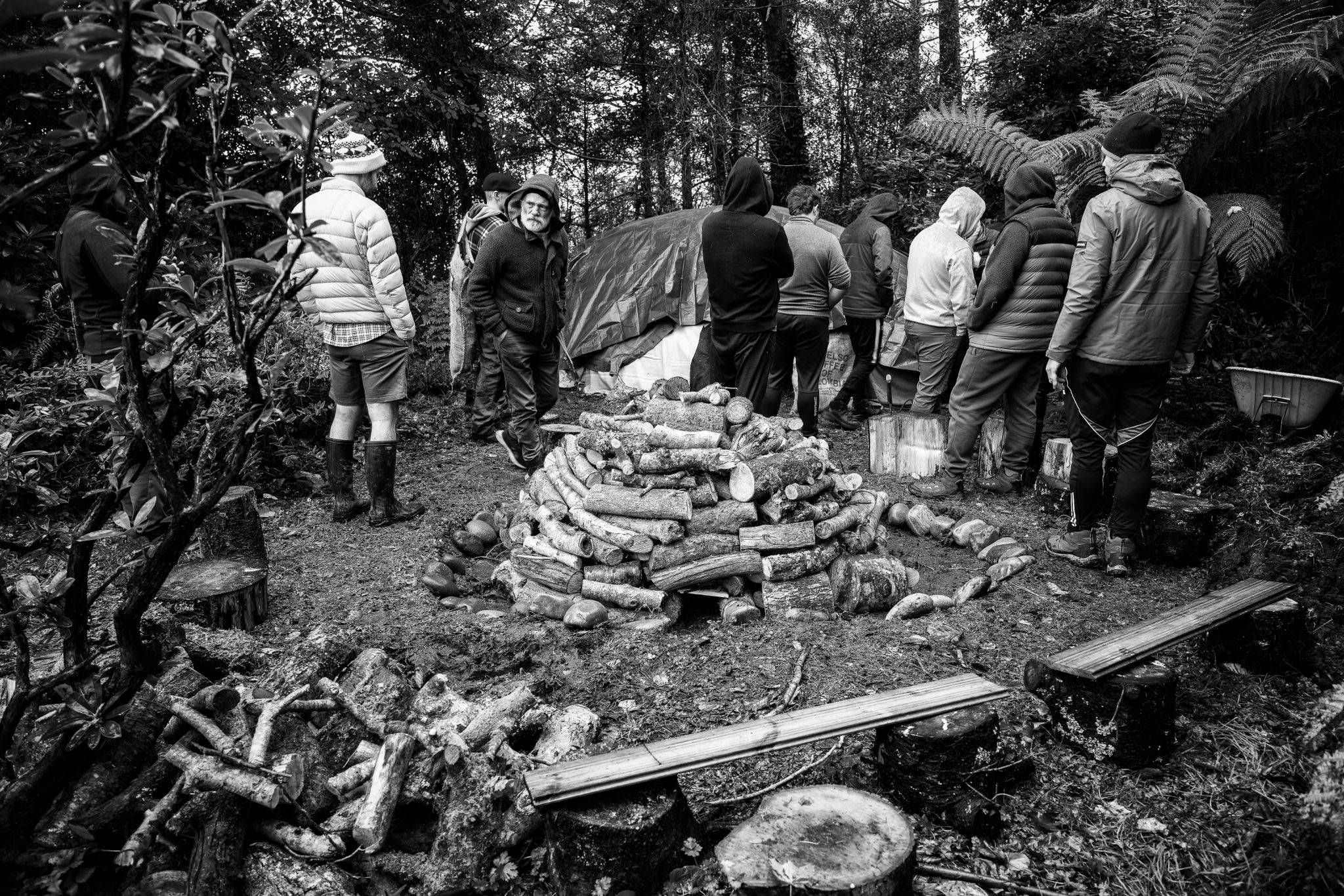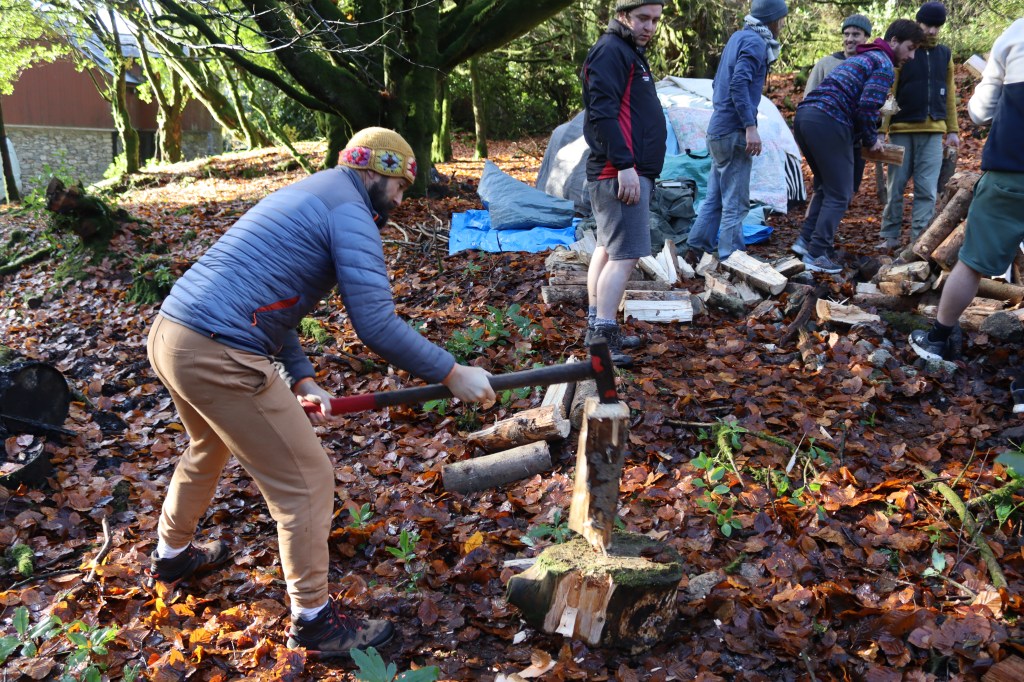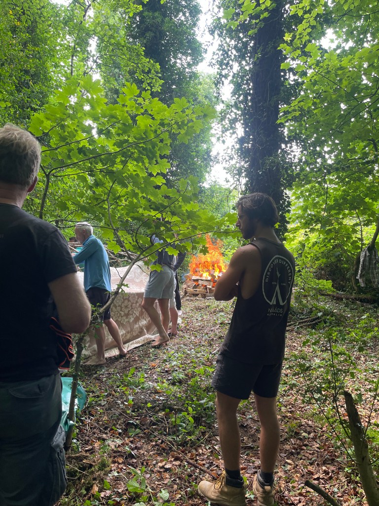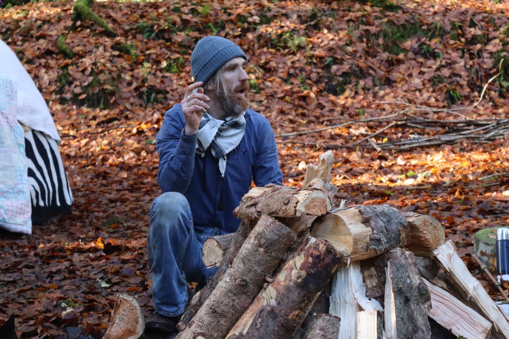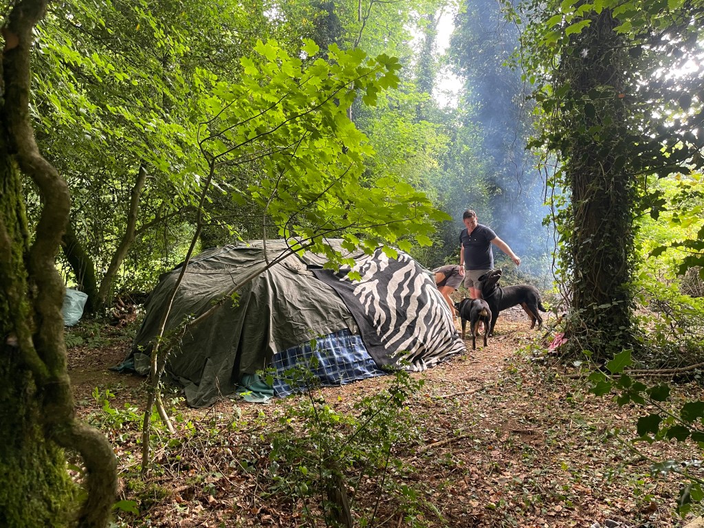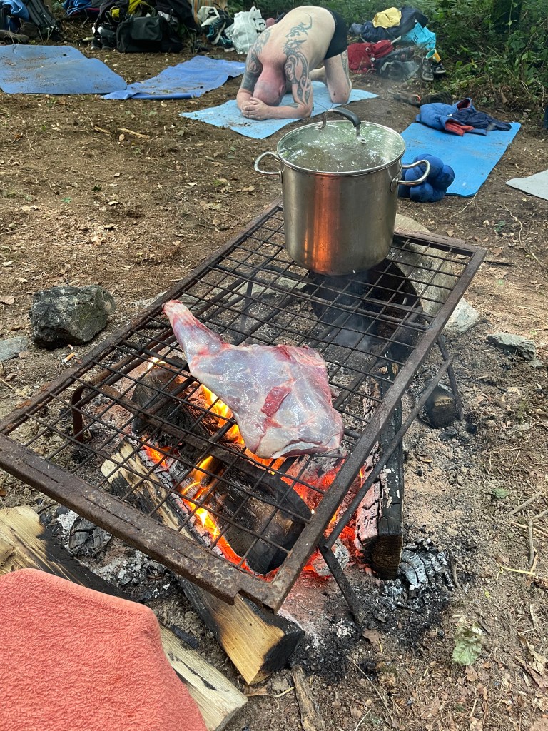 building the frame for the sweat lodge