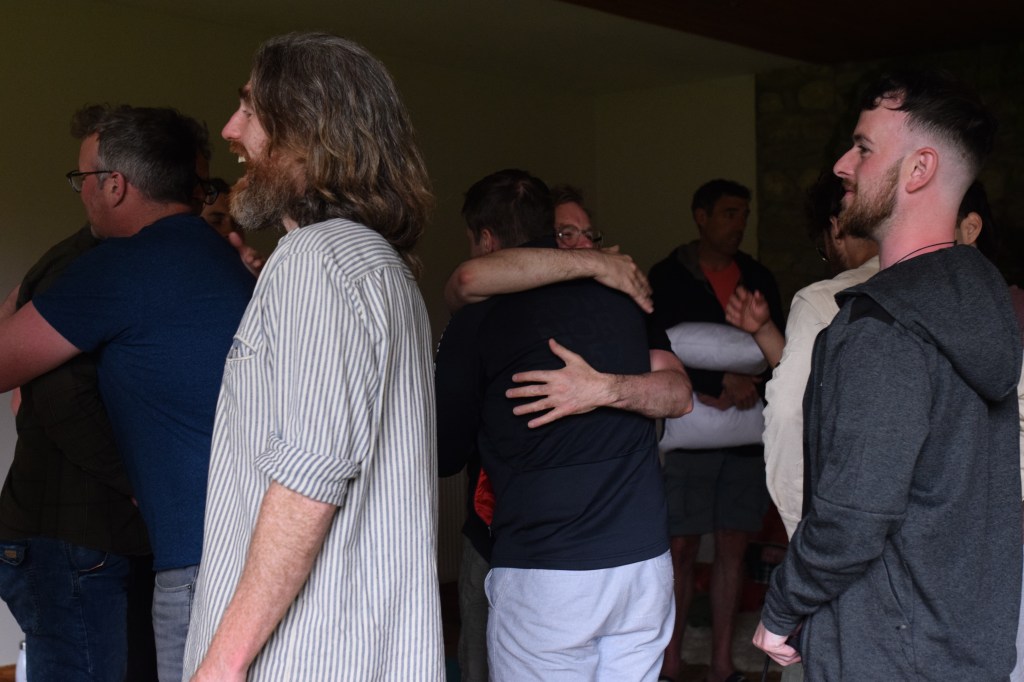 An artist’s depiction of men doing inner work